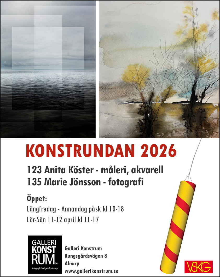 Alltid öppet under påskens Konstrunda annars öppet enl. överenskommelse. Kontakta oss på info [@] gallerikonstrum.se